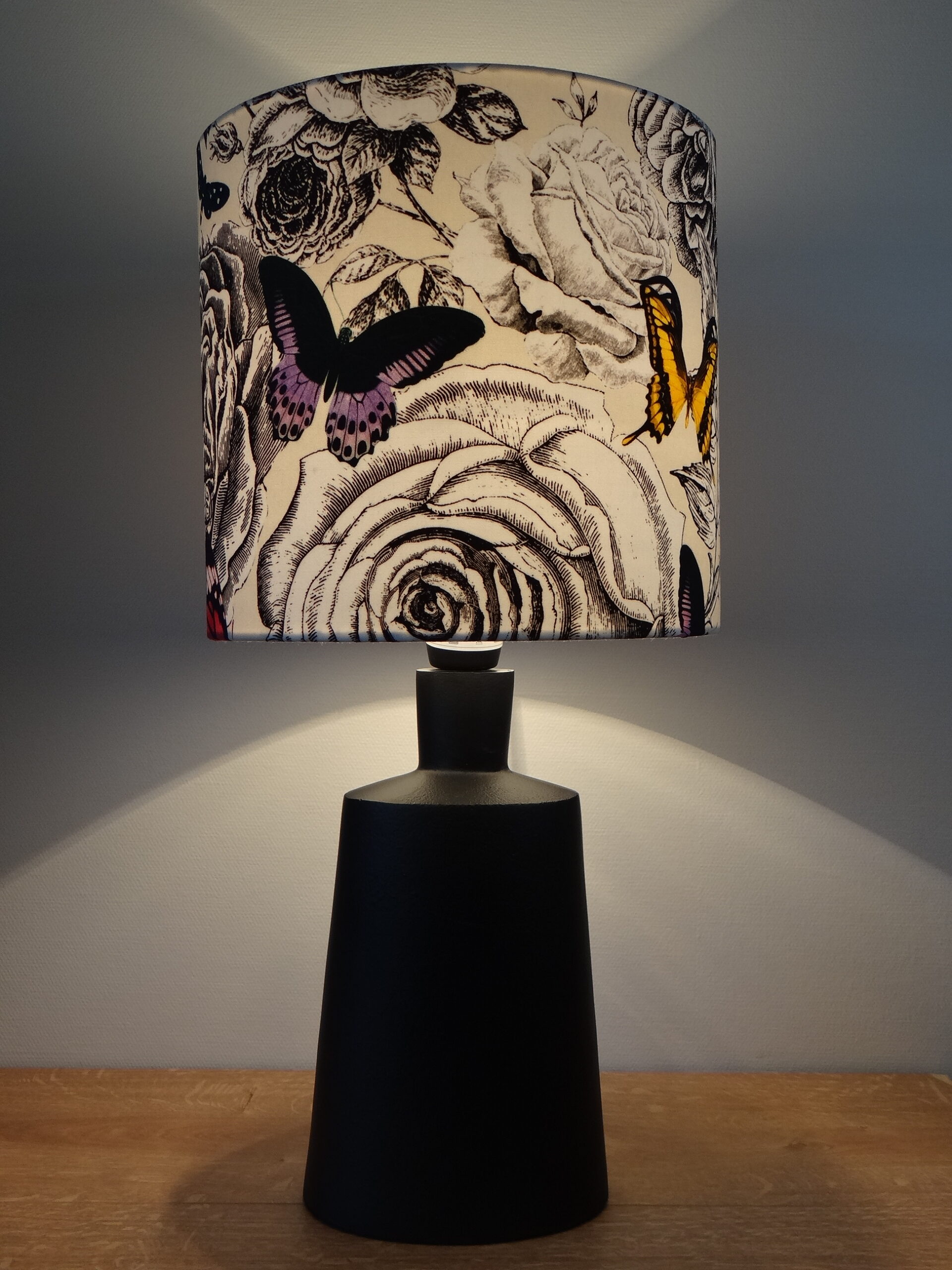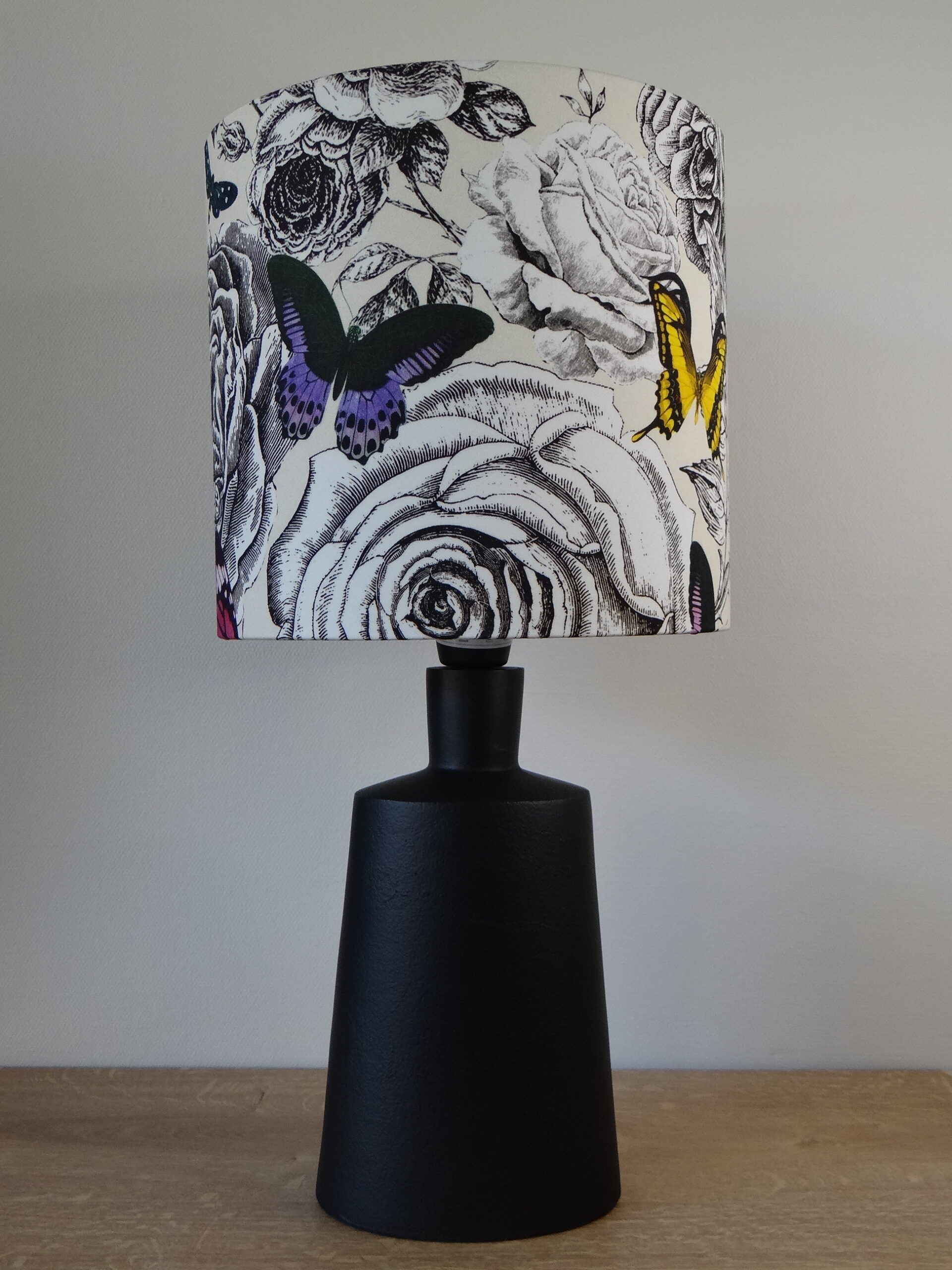 L’abat-jour « Butterfly » est réalisé avec un tissu Osborne and Little. Ce coton imprimé de roses noires et blanches et de papillons aux couleurs vives égaillera votre intérieur. Cet abat-jour peut-être utilisé pour embellir un pied de lampe avec une douille E27 ou E14 en ajoutant un réducteur.